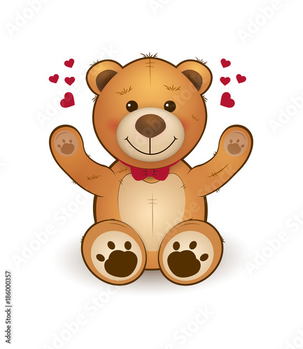 © designervector, Obraz premium Funny cartoon teddy bear for greeting card on st. Valentine's day, wedding, birthday