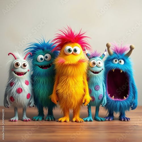 © Fabio Zampirão, Fototapeta premium funny cartoon zombie with horns two owls monsters