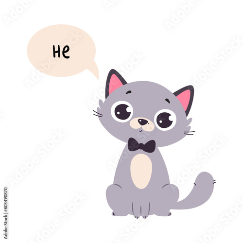 Obraz premium Funny Cat and English Subject Pronoun He Vector Illustration
