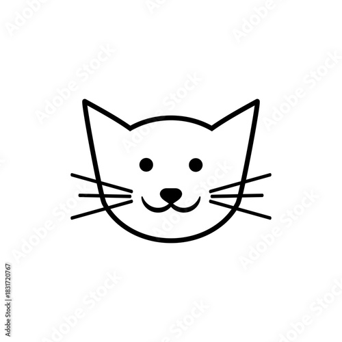© Siarhei, Obraz premium Funny cat head and face outline with smile. line art icon. Simple minimal vector drawing.