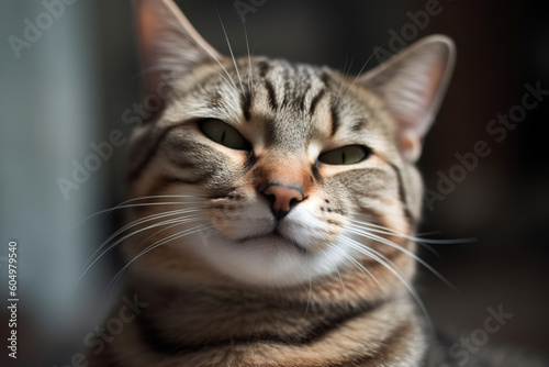 Fototapeta premium Funny cat laughing. Happy and kind relaxed kitten face with happy satisfied smile. Generated AI.