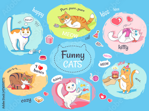 © robu_s, Fototapeta premium Funny Cats Poster with Images of Everyday Life