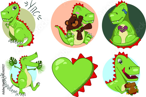 © Рыжая Лиса, Naklejka premium funny character dinosaur emotions stickers