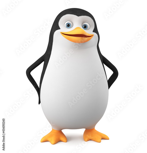 © 3dddcharacter, Obraz premium Funny character penguin on a white background. 3d rendering.