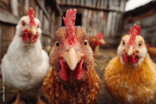 Naklejka premium Funny Chickens Closeup Portrait with Curious Expressions