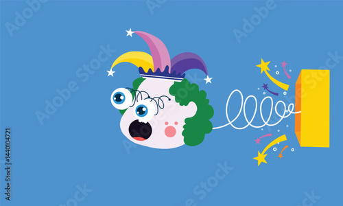 © foxndeer, Naklejka premium Funny clown character with green curly hair