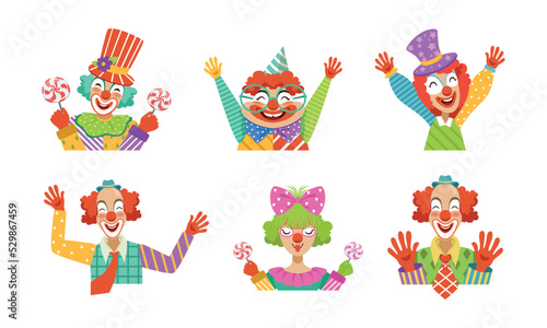 Obraz premium Funny Clown with Makeup-face and Flamboyant Costume Performing Comedy Vector Set