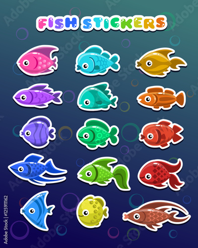 Naklejka premium Funny colorful fish stickers