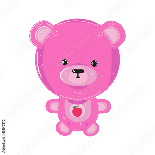 Obraz premium Funny cute happy pink bear character isolated on white background