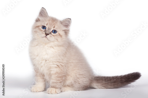 © Жаринов Дмитрий, Fototapeta premium Funny cute kitten sitting on a white background