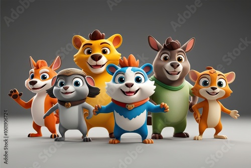© Michael, Naklejka premium Funny 3D Animated Animal Squad Playful Creatures with Isolated Backgrounds