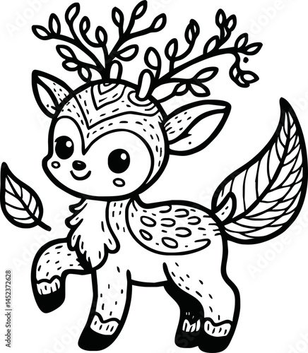 Fototapeta premium Funny deer cartoon characters vector illustration. For kids coloring book.