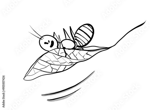Fototapeta premium Funny doodle ant on leaf cartoon