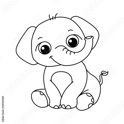 © deny, Obraz premium Funny elephant cartoon characters vector illustration. For kids coloring book.