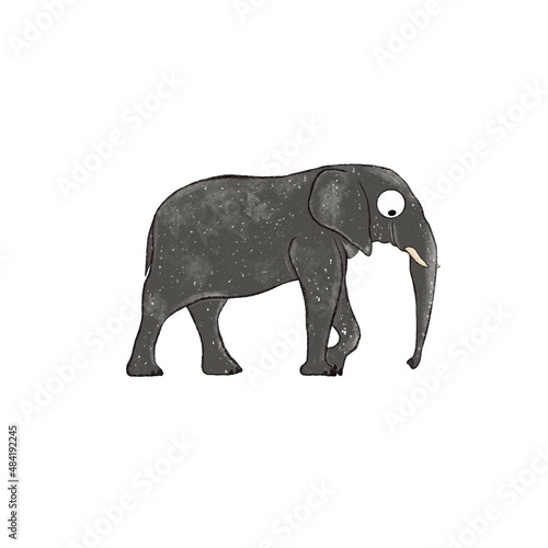 Fototapeta premium Funny elephant illustration on white background. Kids design for fabric, wallpapers, textile, nursing. African animal isolated.