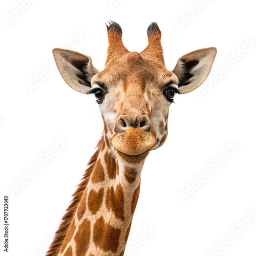 © illustration, Fototapeta premium funny face expression of a giraffe giraffe funny face expression giraffe portrait animal face transparent background image