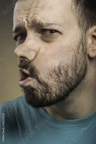 © beornbjorn, Obraz premium Funny Faces - Man Blowing Against the Glass Surface