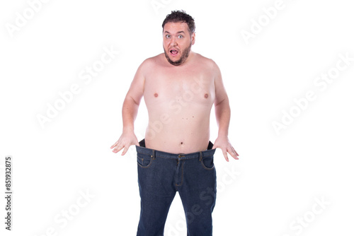 Fototapeta premium Funny fat man. Diet and healthy lifestyle. White background.