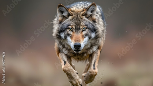 Obraz premium Funny flying Wolf. Image of a playful tabby Wolf jumping in mid-air while...