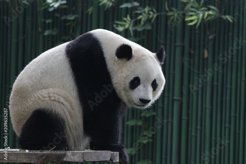 © foreverhappy, Obraz premium Funny Giant Panda in Beijing is Taking a Rest by Sitting , watching the Audiences