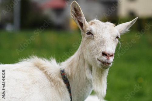 Obraz premium Funny goat on green meadow