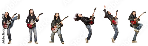Fototapeta premium Funny guitar player isolated on white