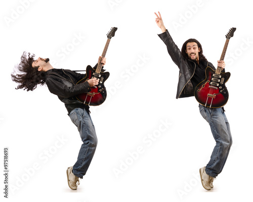 Fototapeta premium Funny guitar player isolated on white