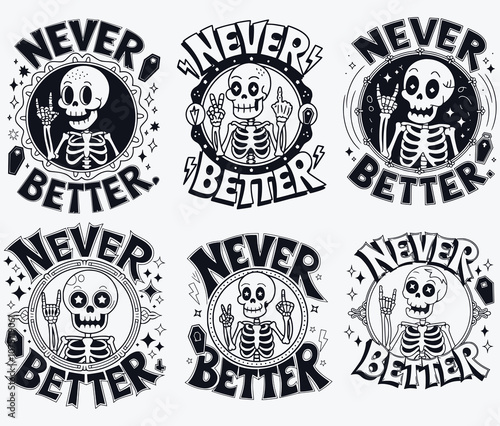 Fototapeta premium Funny Halloween Never Better Funny Skeleton Sarcasm SVG Funny Front Back Svg...