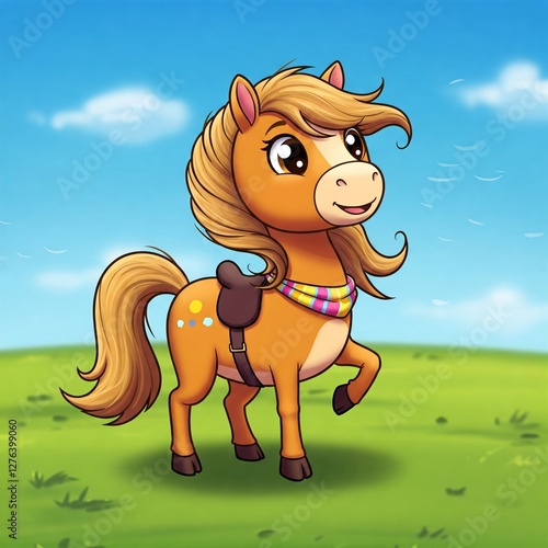 © TNX, Obraz premium funny horse cartoon, Cute Animal Cartoon By JN
