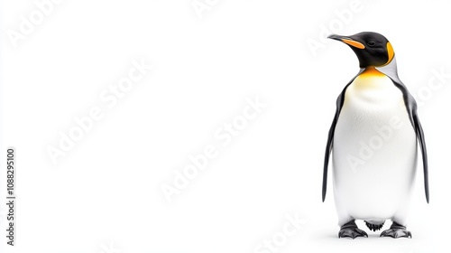 © jobim, Fototapeta premium funny King Penguin Over white Studio Background.