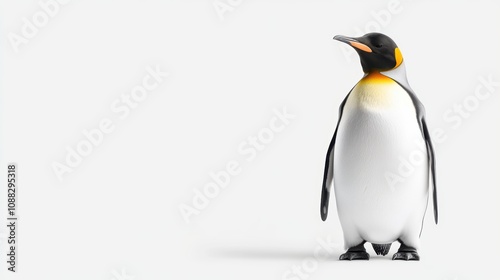 © jobim, Fototapeta premium funny King Penguin Over white Studio Background.