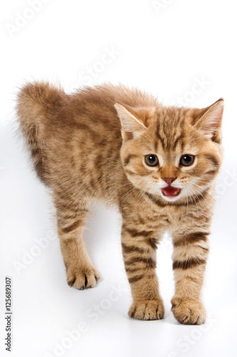 © Dixi_, Obraz premium Funny kitten British cat (isolated on white)