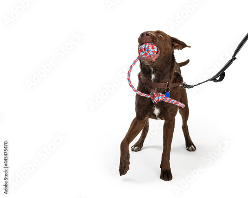 © adogslifephoto, Obraz premium Funny Large Dog Playing With Rope Ball