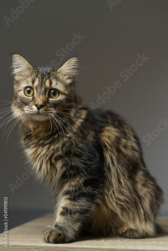 © peterkocherga, Obraz premium Funny large longhair kitten with beautiful big green