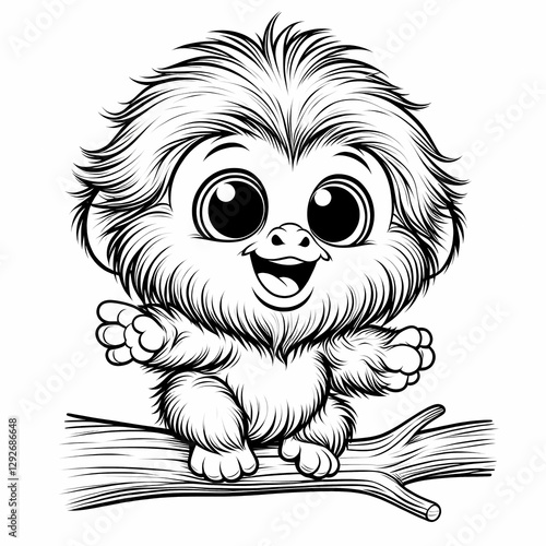 © Akram Mubarak , Fototapeta premium Funny line art sketch of a cheerful uakari monkey sitting on a branch