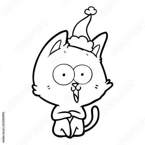 © lineartestpilot, Obraz premium funny line drawing of a cat wearing santa hat