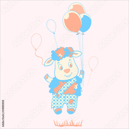 Obraz premium Funny little boy lamb and baloons vector character illustration