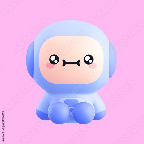 © Porechenskaya, Naklejka premium Funny little kawaii emoji character. Cartoon astronaut boy 3d render illustration on pink backdrop