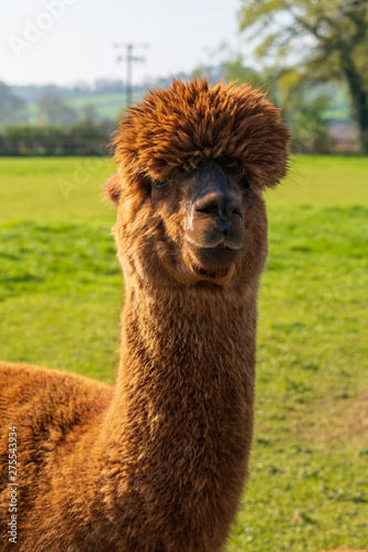 © Toms, Fototapeta premium Funny looking brown alpaca at farm