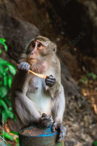 Obraz premium Funny Monkey w Tiger Cave Temple, Krabi
