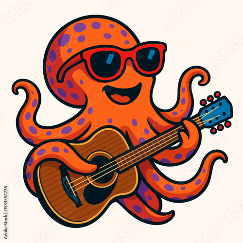 © Karl Mathew, Obraz premium Funny octopus with guitar vector illustration
