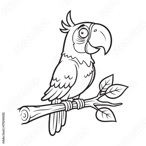 © Alo, Fototapeta premium Funny parrot on a branch coloring page