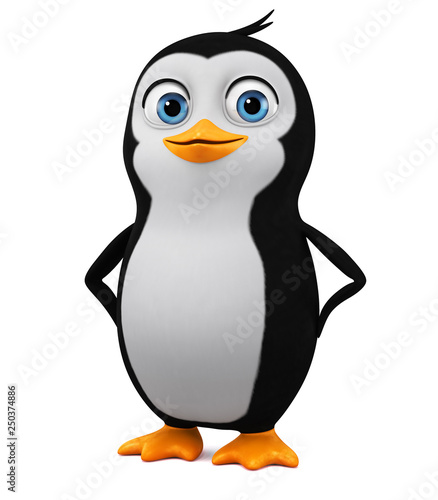 © 3dddcharacter, Fototapeta premium Funny penguin character on a white background. 3d render illustration.