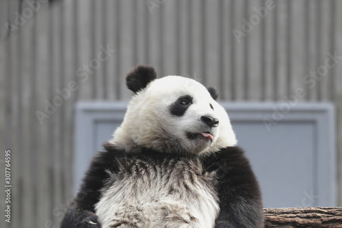 © foreverhappy, Obraz premium Funny Pose of Little Panda while relaxing on the Playground, China
