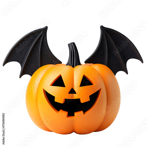 © Attia, Naklejka premium Funny pumpkin with bat wings, white isolated bg