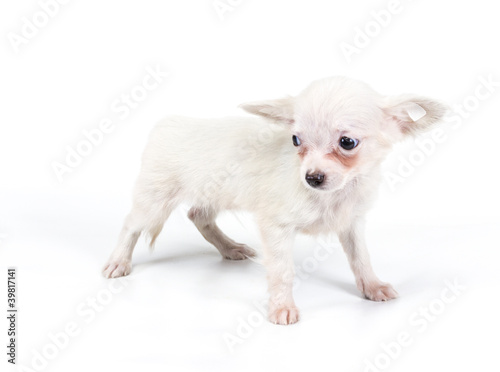Obraz premium Funny puppy Chihuahua poses on a white background