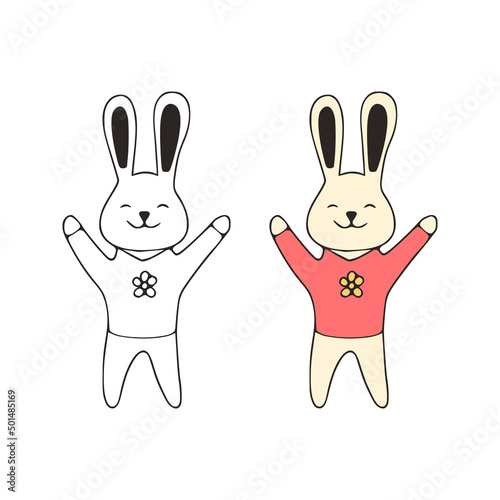 © Vladislav, Fototapeta premium Funny rabbit doodle icon. Cute pets vector art on white background.