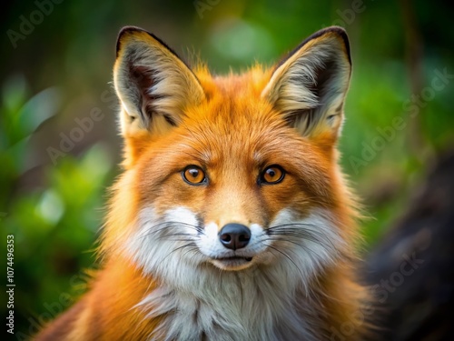 © Four888, Naklejka premium Funny Red Fox in Kamchatka: A Close-Up Portrait of a Beautiful Orange-Coated Animal in Its Natural Habitat, Showcasing the Unique Wildlife of Europe and Nature's Charm