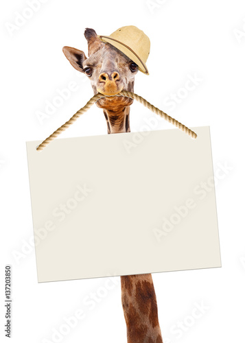 Fototapeta premium Funny Safari Giraffe Carrying Blank Sign