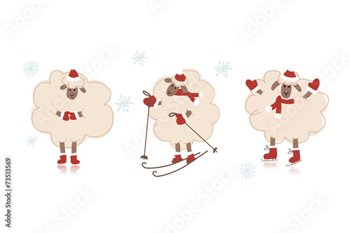 © Kudryashka, Obraz premium Funny santa sheeps, symbol of new year 2015